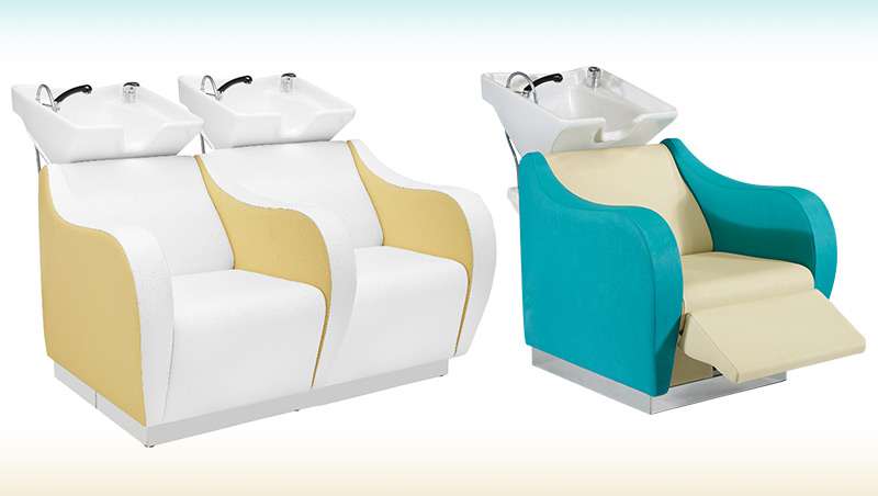 La comodidad es una máxima en el trabajo de un estilista. Por eso, los modelos Galeone son basculantes y ergonómicos. Además, están diseñados como un mueble bajo fabricado en fibra de vidrio en color blanco y cerámica honda a elegir entre el blanco o el negro. Por otra parte, llevan incorporado un sistema antigoteo para hacer más fácil y limpio cada servicio, Hay más de mil colores de tapicería para elegir adecuados a los gustos del cliente.
