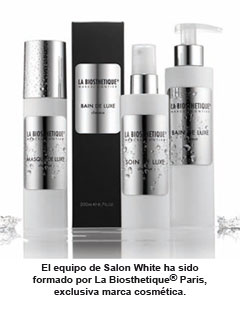 El equipo de Salon White ha sido formado por La Biosthetique® Paris, marca cosmética exclusiva que destaca por su alta tolerancia y eficacia en los productos para cabello y piel. Todos los productos están desarrollados en los laboratorios más modernos, sin experimentación en animales y con los conocimientos científicos más recientes. Son testados dermatológicamente de forma regular, destacando por una tolerancia cutánea extremadamente buena.