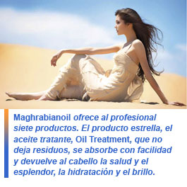 En un primer momento Maghrabianoil ofrece al profesional siete productos: Oil Treatment, Moisturizing Shampoo, Moisturizing Conditioner, Deep Hydration Mask, Beauty & Definition Cream, Curl & Volume Mousse y Express Shine Spray.
