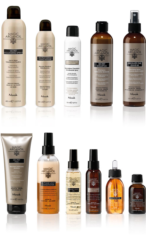 Magic Arganoil es la nueva línea de Nook. Una gama de productos diseñados para mantener el cabello sedoso, brillante y perfectamente equilibrado. Puede usarse en todo tipo de cabello, trabajando en el interior de la fibra para garantizar la hidratación instantánea, brillo y un acabado extraordinariamente sedoso, dejando el cabello más fuerte y saludable.