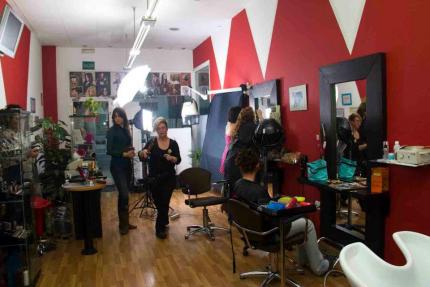 Fue super divertido y aquello parecia un campo de batalla, el fotografo trajo 4 modelos mas para montarla mejor... las peine a todas y como dije en el otro post me ayudo media luna con una melenaza de ondas.