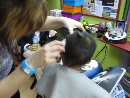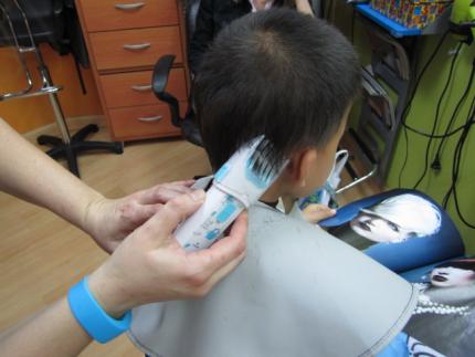 ayer he recibido la maquinilla y con tan buena suerte ha venido un niño chino recien adoptado y era su primer corte de cabello en españa.