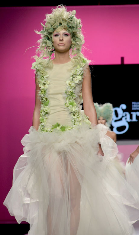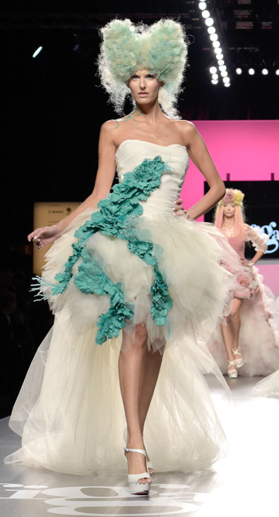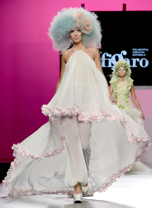 La colección ganadora se inspira en las xanas, hadas buenas del agua y guardianas de la naturaleza. Montes ha representado a estas ninfas con cabellos en forma de filigrana, a base de volúmenes exagerados y tonos pastel combinados. Personajes de cuento de hadas versionados por una de las estilistas más prometedoras.