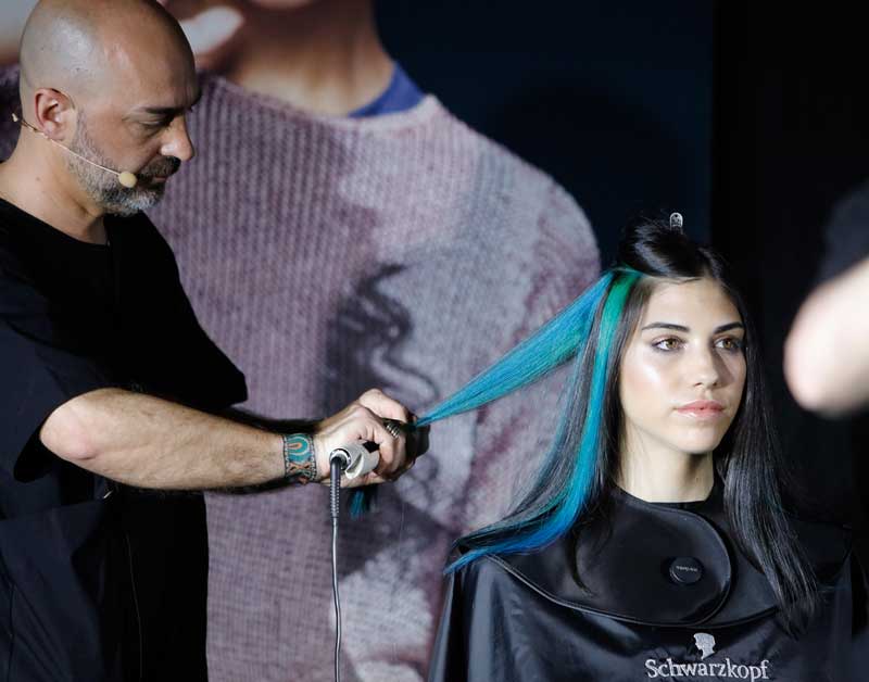 Les siguió la actuación a cargo del equipo de embajadores nacionales de Schwarzkopf Professional, compuesto por Ángel, de Rafael Angel Peluqueros, Christian Vendrell, de Arturo Rosaleñ y Ángel Chamborro, quienes ejecutaron en directo algunos peinados de la última colección Essential Looks, Made To Create.
