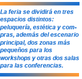 La feria se dividirá en tres espacios distintos: peluquería, estética y compras, además del escenario principal, dos más pequeños para los workshops y otras dos salas para las conferencias. Se espera la llegada de unos 170 expositores en un espacio de 12.500 m², aunque el hall tiene posibilidades para una mayor expansión.