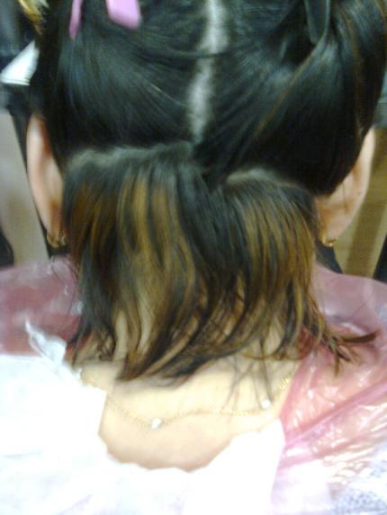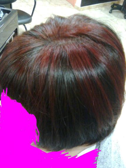 estan hechas en bloques por detras rectos y zonas laterales verticales.por arriba lo queria asi para que se le viese bastante trozo de bloque,para hacer la foto no coloque para irse peinada,lo coloque de manera que el color de la mecha que habia quedado se viera mejor.entre las fotos malas y me reflejaban las luces de arriba no se veian bien..despues de deco le aplique de montibelo(gama rojos).