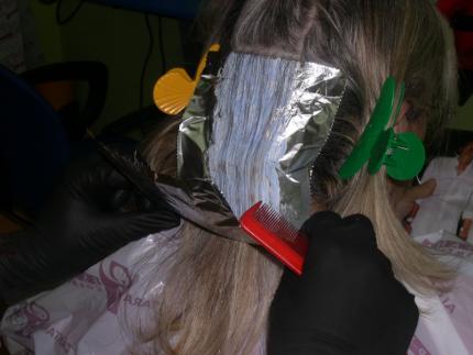 tambien es importante no poner la deco nadamas que en el filito del papel osea que no salga nada de deco de la plata ,no por salirte de la plata te queda mas de raiz,si te sales te pasa que se mancha el pelo que no va de mecha y luego queda la linea horizontal manchada,