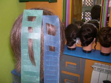 colocamos trozos de celo del tamaño de la secccion de pelo qe hemos cojido i vamos pegandolo en forma de paso de cebra en horizontal cuando tengas todo el mechon cubirto con los celos