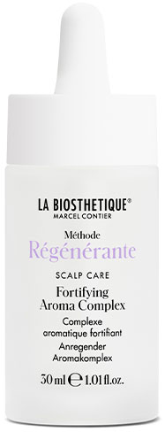 Para que el cuerpo pueda desplegar todos sus poderes, necesita un equilibrio saludable, al igual que el cuero cabelludo. Para que el cabello pueda nacer fuerte y saludable, necesita un entorno equilibrado. Fortifying Aroma Complex contiene aceites esenciales con poderes armonizantes sobre el cuero cabelludo y a la vez activa sus funciones naturales. La salvia sclarea, el tomillo y el geranio de rosa ejercen una acción antimicrobiana y equilibrante. La lavanda intensifica el efecto relajante y el romero estimula la circulación y el metabolismo del cuero cabelludo. Por lo que el cuero cabelludo experimenta un estado de actividad, mejorando el aporte de energía a la raíz capilar y actúa contra las alteraciones del crecimiento y la caída del cabello. El aroma de Fortifying Aroma Complex promueve el efecto armonizante y estimulante y ejerce su acción sobre cuerpo y mente.