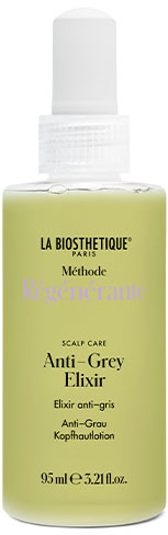 Recupera el color natural del cabello sin necesidad de emplear pigmentos externos. El complejo de Anti-Grey con triple acción dispone de una sustancia activa patentada y clínicamente testada. Un péptido biomimético activa la producción natural de melanina en la papila capilar y recupera así el color natural del cabello. Al mismo tiempo, un extracto vegetal del arbusto de vela protege las células que generan pigmentos, ralentizando la aparición de mas canas. Un extracto de la piedra mineral malaquita aporta oligoelementos esenciales. El cabello recupera así su resistencia y fuerza. Se ejerce una repigmentación en la raíz y se recupera el color del cabello natural.
