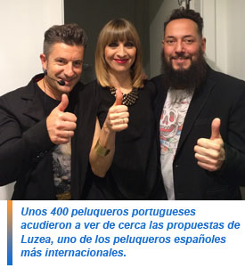 Unos 400 peluqueros portugueses acudieron a ver de cerca las propuestas de Luzea, uno de los peluqueros españoles más internacionales: presentó esta misma colección en México hace ya casi un año, y ha podido llevarla ya a diferentes partes del mundo.