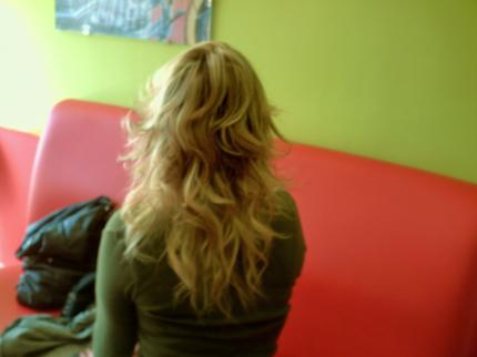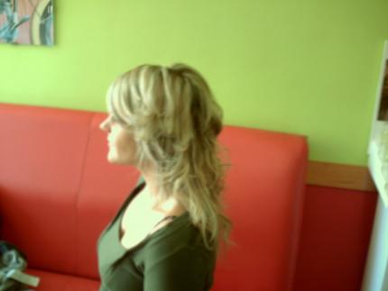 bueno voy a explicar un poco,la chica se había casado hace poco llevaba el pelo largo por lo de el recojdo y llevaba el color la altura de un 6 le hice muchas mechas finas a 20v matizadas con el champú negro y le escalone toda la melena,le seque el pelo con difusor (lo tiene muy fino y poca cantidad) luego can la lancha le iba haciendo una ondas unos mechones para arriba y el flequillo liso.