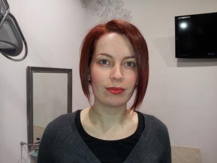 Estoy con ele.pro ! Me gusta rizado, te endulza mas las facciones y aunque cierto que los colores se lucen mas en lacio, el rizo en ese corte te queda genial !