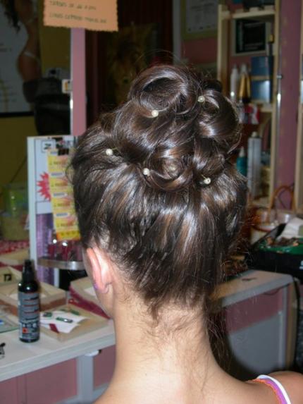 hola compis, tengo una duda, el sabado tengo una clienta que lleva el pelo larguisimo,algo escalado y tiene bastante cantidad.ueno la cosa es que quiere un moño alto y se me han bloqueado las neuronas ¿que hago con tanto pelo? alguna sugerencia porfi , besos