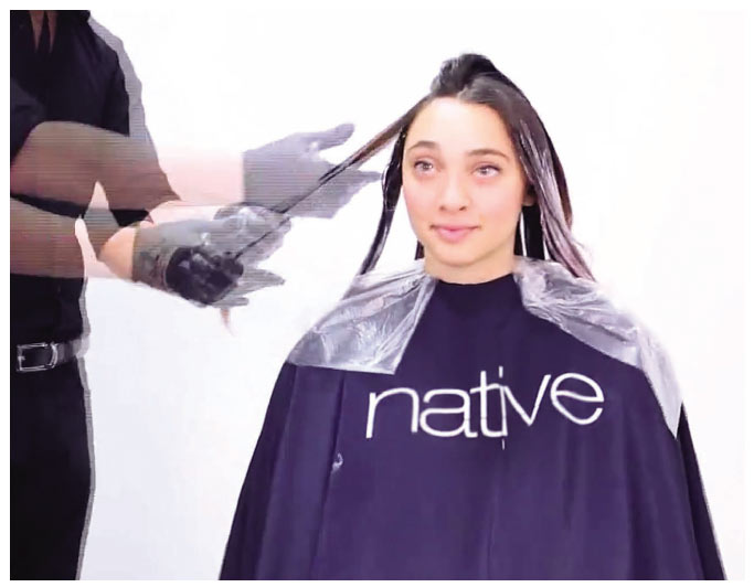 - Desde la parte posterior de la cabeza, se empieza a decolorar según la longitud del cabello.