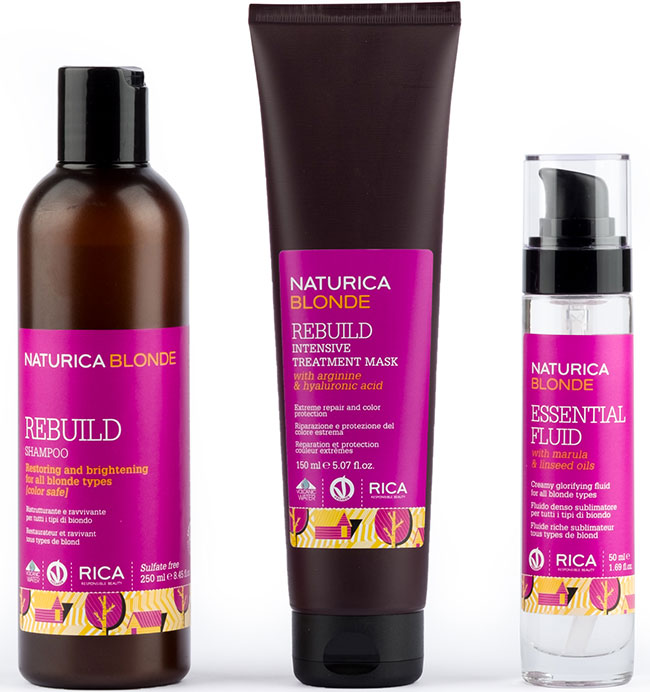 Agua volcánica, linaza, marula, arginina y ácido hialurónico. Este es el cóctel de ingredientes naturales que componen la nueva línea para rubias: Naturica Blonde de Rica. Una nueva gama compuesta por tres productos: champú, mascarilla y fluido iluminador.