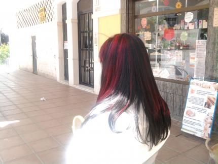 muchas gracias ,jejejeeje bueno primero cogi unos velos con plata gorditos ,con deco a 30 vol ,le puse color y despues lave una a una las mechas para que no tomara el color el cabello negro ,despues prepigmente con color rojo directamente de la casa periche profesional y luego a 10 volumenes ,le puse el tinte rojo y buala ,ya lo veis el resultado .