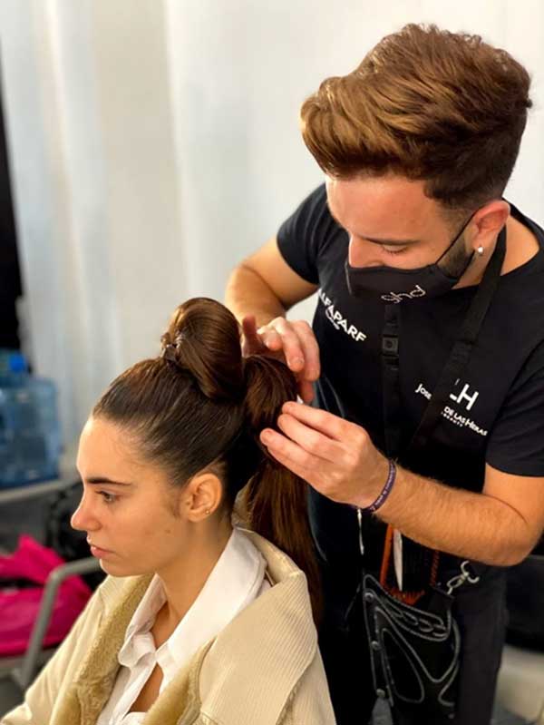 Los estilistas de JLH Peluquerías han sido fieles a la temática, estilo e inspiración de estas maravillosas colecciones para que las novias lucieran un look totalmente acorde a su vestido y escuchando y atendiendo minuciosamente, como siempre, todas las indicaciones de su diseñador, quien concibe a cada novia en su totalidad a la hora de proyectar sus creaciones. Para los trajes de noche y fiesta los recogidos con volumen fueron los protagonistas, donde los peluqueros "de las Heras" se dejaron llevar por su inspiración, el visagismo de la modelo y el corte superior del vestido a desfilar.