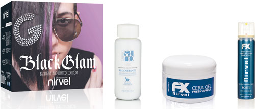 BlackGlam Box contiene tres productos Nirvel Professional que el cantante utiliza en su día a día para cuidar y modelar su cabello. Compuesto por un champú de tratamiento, Cera Gel Fresh effect, producto para esculpir el cabello y por último una Laca mini Fx Forte, para retocar el cabello en cualquier lugar.