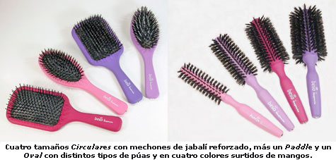 Se presentan en 4 colores, uno para cada distinto tamaño de Brushing (cepillos circulares) y en colores surtidos para los modelos Oval y Paddle.