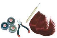 Las extensiones vienen acompañadas por un muestrario de color para asesorar al cliente, un set de aplicación completo (ganchillo, alicate, 5 cajas de aros-grapas de diferentes colores, adhesivo y quita-adhesivos) y un póster y otros elementos promocionales.
