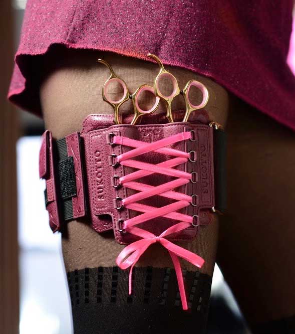 La funda para tijeras DragonFly tiene múltiples espacios para clips, peinetas y otros accesorios, e incluye un bolsillo de cuero para propinas, licencia de conducir y tarjetas de crédito. Además, este innovador producto viene en tres diferentes presentaciones con broches y bandas elásticas para adaptarse a cualquier tamaño de brazo, e incluso se puede usar en el antebrazo, bíceps o incluso en el muslo.