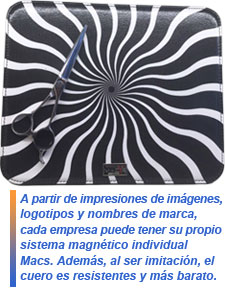 Los estuches magnéticos de Macs están diseñados con imanes para permitir apoyar, sostener y mantener a salvo las tijeras y demás herramientas que el profesional del cabello necesita tener a mano para trabajar.