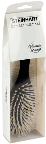 El cepillo plano Keratin de Steinhart Professional ayuda a prolongar la keratina en el cabello, proporcionando un aspecto más sano y brillante, siendo especialmente diseñado siguiendo el consejo de importantes fabricantes, para el mejor cuidado de los cabellos con tratamientos de keratina, alargando el efecto de su alisado, proporcionando un aspecto más natural y manteniendo el cabello más brillante y sedoso.