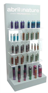 Abril et Nature cosmética capilar lanza este precioso expositor fabricado con materiales de alta calidad y tecnología como el cristal o metacrilato.