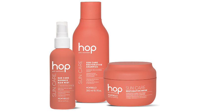 Hop Sun Care cuenta con tres productos esenciales diseñados para proteger, limpiar y reparar el cabello, antes, durante y después de la exposición solar: