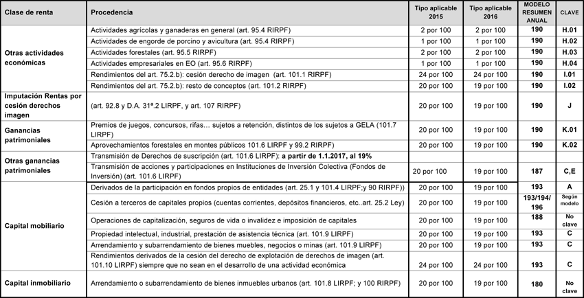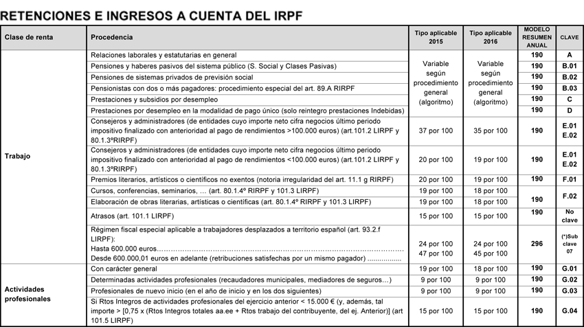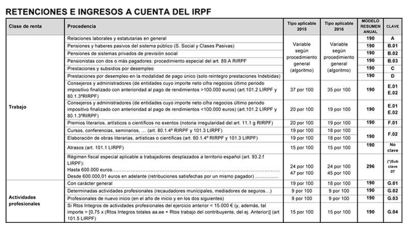 Nuevo IRPF: resumen de los tipos de retenciones a cuenta