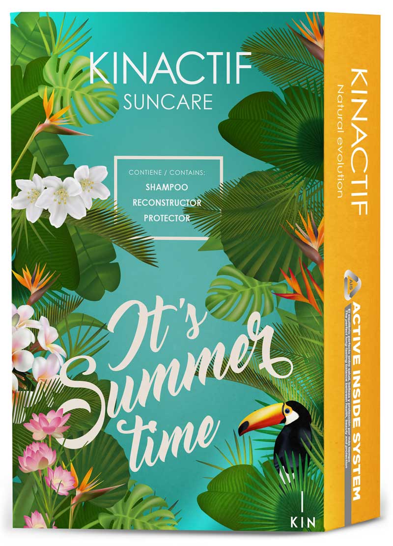 Este año KIN Cosmetics presenta este pack con los tres productos Kinactif Suncare que cuidan y protegen el cabello de los efectos del verano. Además, al estar enriquecidos con aceite de albaricoque, proteínas de trigo y filtro UVA y UV-B, protegen e hidratan profundamente la estructura interna del cabello proporcionándole máxima elasticidad y brillo natural.