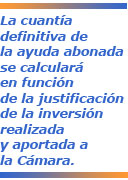 3) La cuantía definitiva de la ayuda abonada se calculará en función de la justificación de la inversión realizada y aportada a la Cámara.