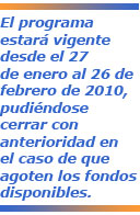El programa estará vigente desde el 27 de enero al 26 de febrero de 2010, pudiéndose cerrar con anterioridad en el caso de que agoten los fondos disponibles.Beneficiarios