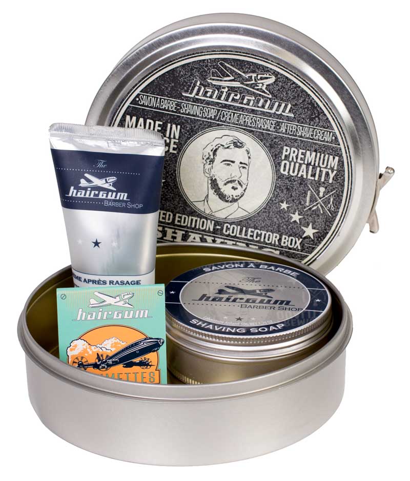 Hairgum ha desarrollado un Set Barber Coleccionista en caja metálica y compuesto de jabón de afeitado, after shave y caja de cerillas. El jabón y la crema after shave se comercializan en formato de 50 gramos. El set, de diseño elegante y original, es ideal para regalar u ofrecer a los clientes de la barbería.