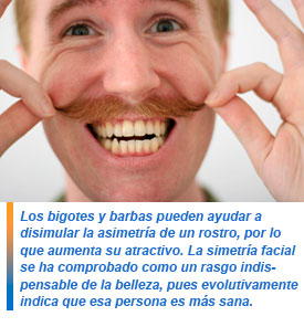 » Aumenta tu atractivo: la simetría facial se ha comprobado como un rasgo indispensable de la belleza, pues evolutivamente indica que esa persona es más sana. Los bigotes y barbas pueden ayudar a disimular la asimetría de un rostro, por lo que aumenta su atractivo. Además, una mandíbula y un mentón marcados son sinónimo de belleza masculina, por lo que al tener barba se aparenta que estas zonas de un rostro son más grandes.