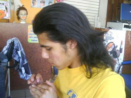 Yo a este chico tambien se lo mantendría largo, le haría unas patillas chulas y unas capitas en la melena...pero largo, tiene un pelo muy bonito, coincido con ris y txusica, saludos.