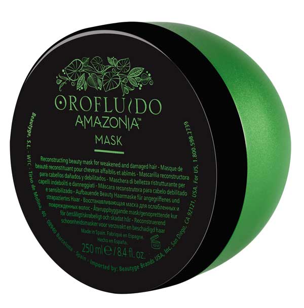 - Orofluido Amazonia Mask (250 ml). Fórmula enriquecida con queratina. Ayuda a reparar la fibra capilar. Alisa y sella la cutícula para lograr un cabello de aspecto saludable.