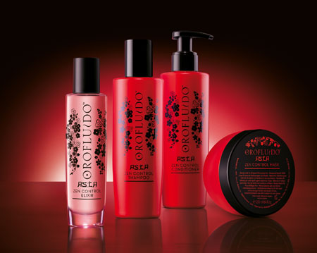 El nuevo ritual Orofluido Asia está compuesto por cuatro nuevos productos: Zen Control Shampoo, Zen Control Conditioner, Zen Control Mask y Zen Control Elixir. Las fórmulas del champú, el acondicionador y la mascarilla contienen pantenol, que hidrata, nutre y repara el cuero cabelludo, y almidón de maíz hidrolizado, que reduce el encrespamiento y mejora la manejabilidad del cabello.