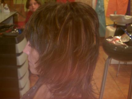 la chica llevaba base tintada altura 4 le aplique mechas finas por toda la cabeza para dar luz con deco a 10v lave quite la humedad matice con el 9.12 de salerm,corte degradado con flequillo recto por la cejas.secado al aire,acabado con oro fluido.