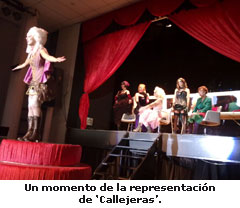 Se abre el telón. Sobre el escenario del Casal de Cultura Robert Brillas, de Esplugues de Llobregat, la perfecta simbiosis de teatro, cabaret y comedia, 'Callejeras', de Bitxos Teatre. Un viaje iniciático de unas mujeres en busca de su identidad como tales. Una luz interior las guía hasta encontrar "el camino del amor", asegura su directora, Cristina Baeza.