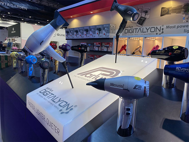 Punto de parada para los estilistas británicos y llegados de otros países, el estand de Parlux en Salon International, organizado por Hairtools, distribuidor de Parlux para Gran Bretaña, este estuvo muy concluido durante todo el Saló. Este año, el estand se dedicó a la presentación del nuevo secador de cabello de 2022 Parlux Digitalyon®, "el primer secador de pelo de Parlux con un motor profesional digital".