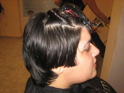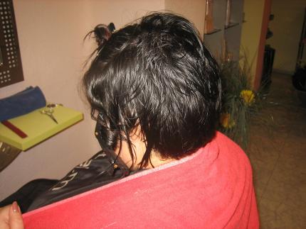 en este paso os presento las particiones...para que realmente las separaciones sean efectiva...queremos un cabello corto...pero que no este demasiado descargadoen la zona trasera..
