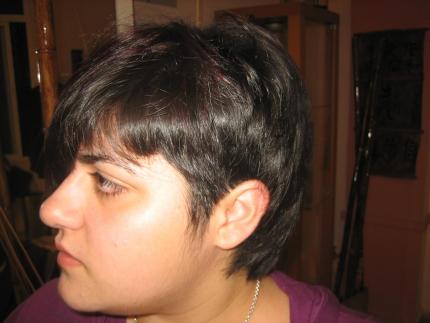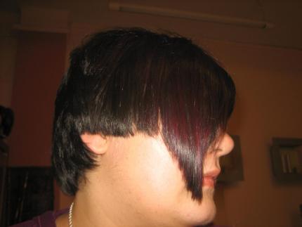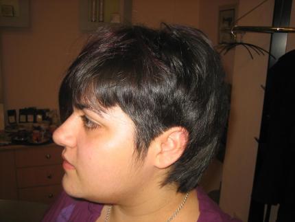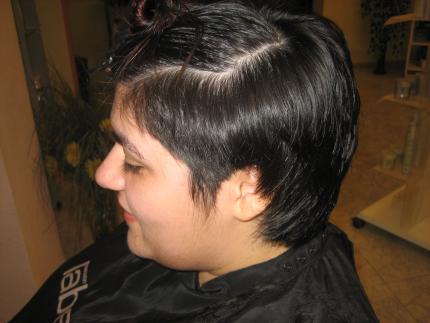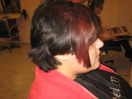 A mi tb me gusta el corte y el color tb. pero si se puede decir un pero, la cara de la chica es demasiado redonda para este estilo,q ahora se ve toda la papada pero es mi opinion y si ella le gusta como le queda pues perfecto.......