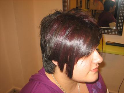No es rojo si no violeta y verde, te lo puedo asegurar porque soy yo, me dio el punto de pelo corto y.....