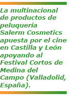 La multinacional de productos de peluquería Salerm Cosmetics apuesta por el cine en Castilla y León apoyando al Festival Cortos de Medina del Campo (Valladolid, España), uno de los más importantes de nuestro país, con la creación del premio Salerm Cosmetics al Mejor Peinado, que se entregó durante la gala de clausura del festival. Salerm Cosmetics crea este premio al actor o actriz mejor peinado, apoyando así a la peluquería, uno de los pilares fundamentales dentro del rodaje de una película y pocas veces valorado.