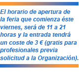 El horario de apertura de la feria que comienza este viernes, será de 11 a 21 horas y la entrada tendrá un coste de 3 euros.
