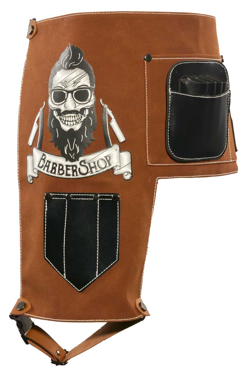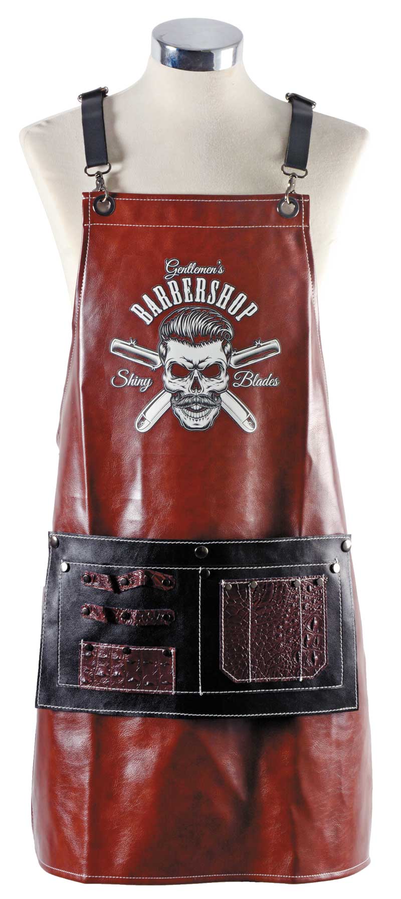 - Shiny Blades Barber. Delantal barbero cuero artificial marrón.