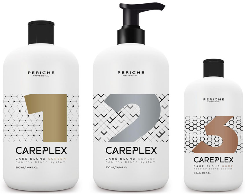 Careplex frena los daños producidos en procesos de decoloración, tintes y permanentes. Se trata de un sistema que fortalece el cabello en dos pasos: Care Blond Screen y Care Blond Sealer para aplicar en el salón y Care Blond Home, postratamiento especifico para Care Blond Screen destinado a uso doméstico.