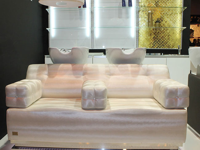Numerosos visitantes vinculados al sector pasaron por el stand de Pietranera, en el que destacaban las glamurosas butacas y lavacabezas. En el stand también se exhibía la lámpara Infrared que obtuvo el Premio a la Innovación por parte de Ifema.